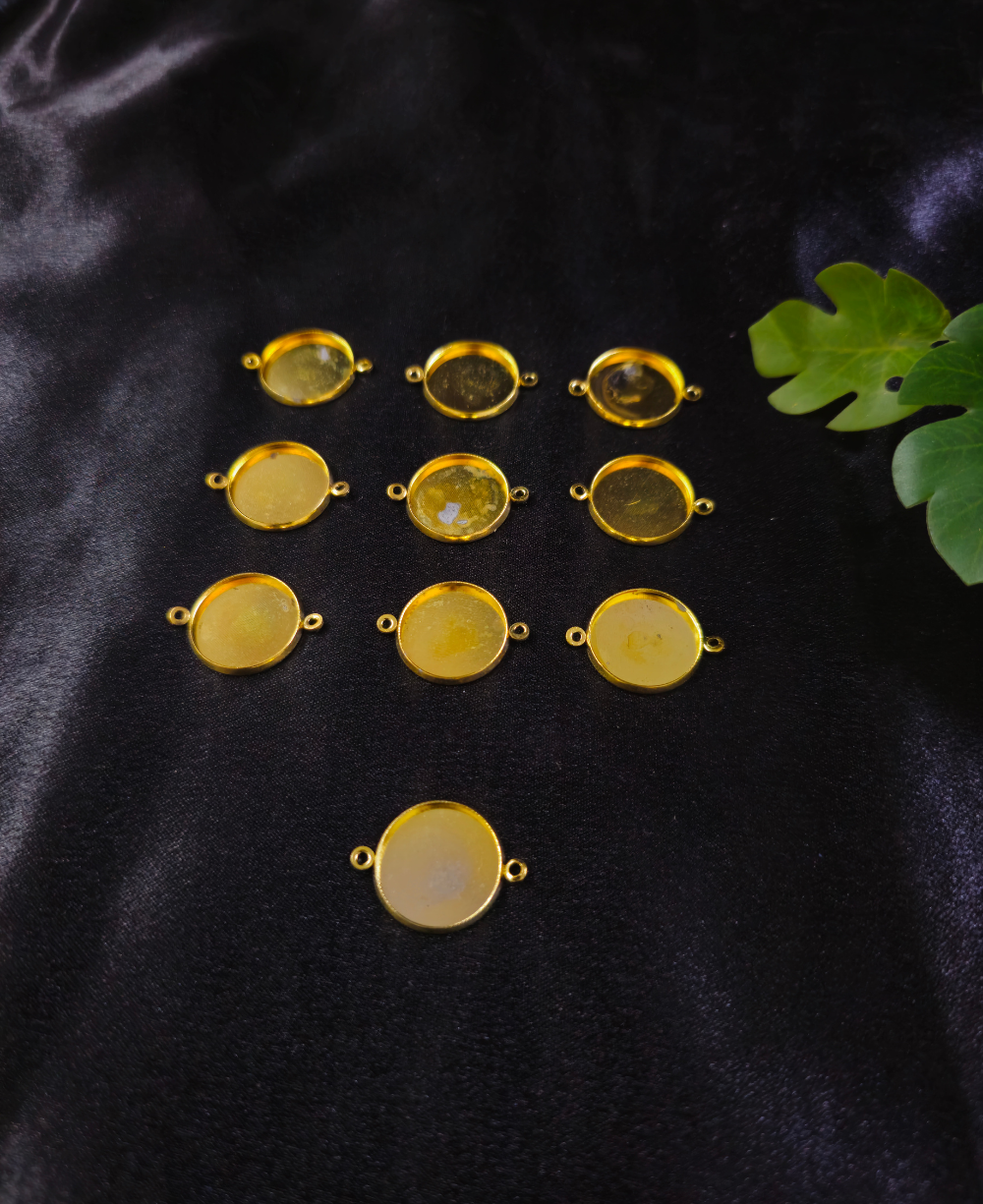 These Gold Double-Sided Round Hook Bezels are perfect for beginners and professional resin artists who love making stylish, minimal and elegant jewellery. Each bezel features hooks on both sides, allowing for flexibility in creating bracelets with layered resin designs. Made with a smooth golden finish and a clean, round tray, these bezels hold resin beautifully and make your dried flowers, pigments, glitter, and embellishments stand out. They are lightweight, durable, and easy to work with—ideal for UV resin and epoxy resin art.
