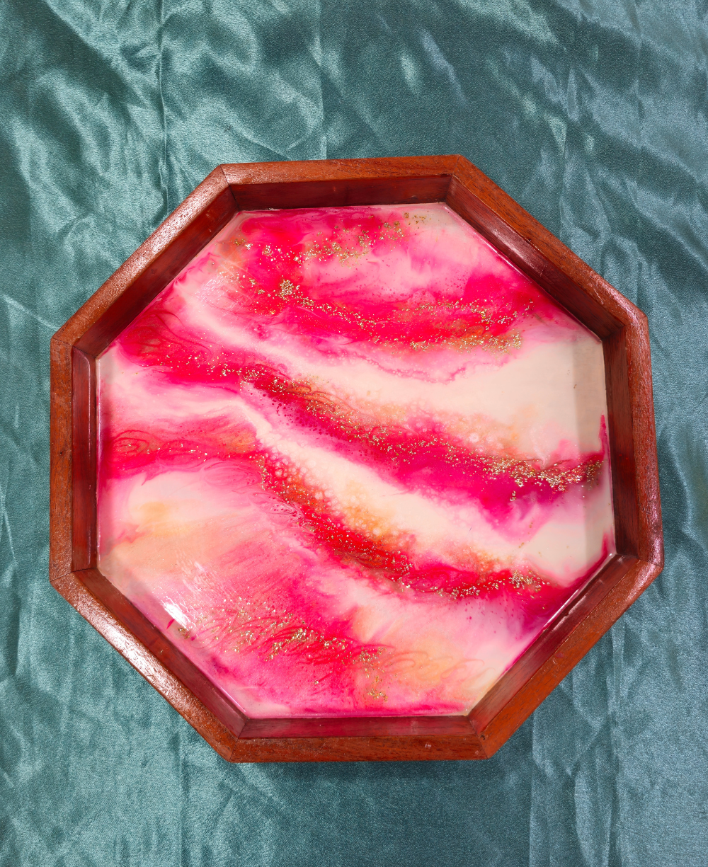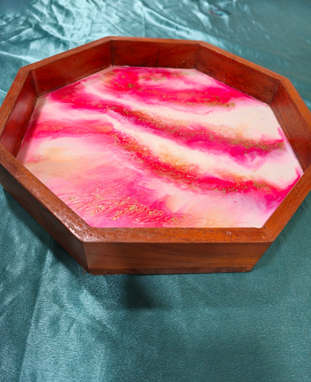 Octagon-shaped tray with glossy resin art
