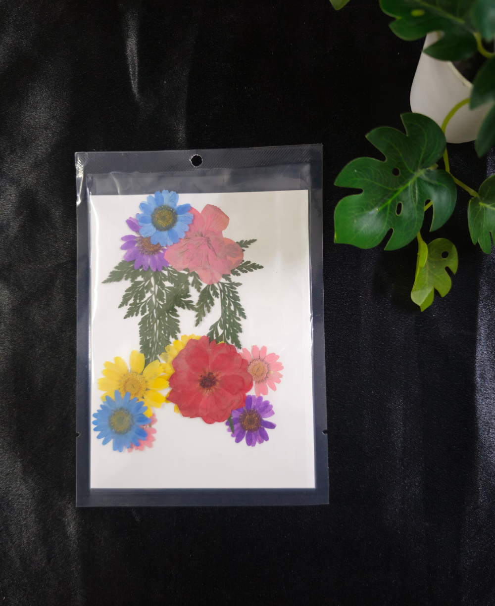 Bring a touch of nature into your artwork with this Mixed Pressed Flower Pack, featuring a beautiful assortment of colourful dried flowers and greenery. Each flower is naturally pressed and carefully preserved to maintain its vibrant colours and delicate texture. Perfect for resin art, scrapbooking, phone case decoration, candle making, card designing, nail art, and other DIY craft projects. These flowers add an elegant, handcrafted feel to any creation. Every pack includes a variety of petals and leaves in different sizes and colours, giving you plenty of creative freedom. Lightweight, easy to use, and sealed to protect freshness, this floral set is ideal for beginners, hobby artists, and professionals looking to add a natural touch to their designs.