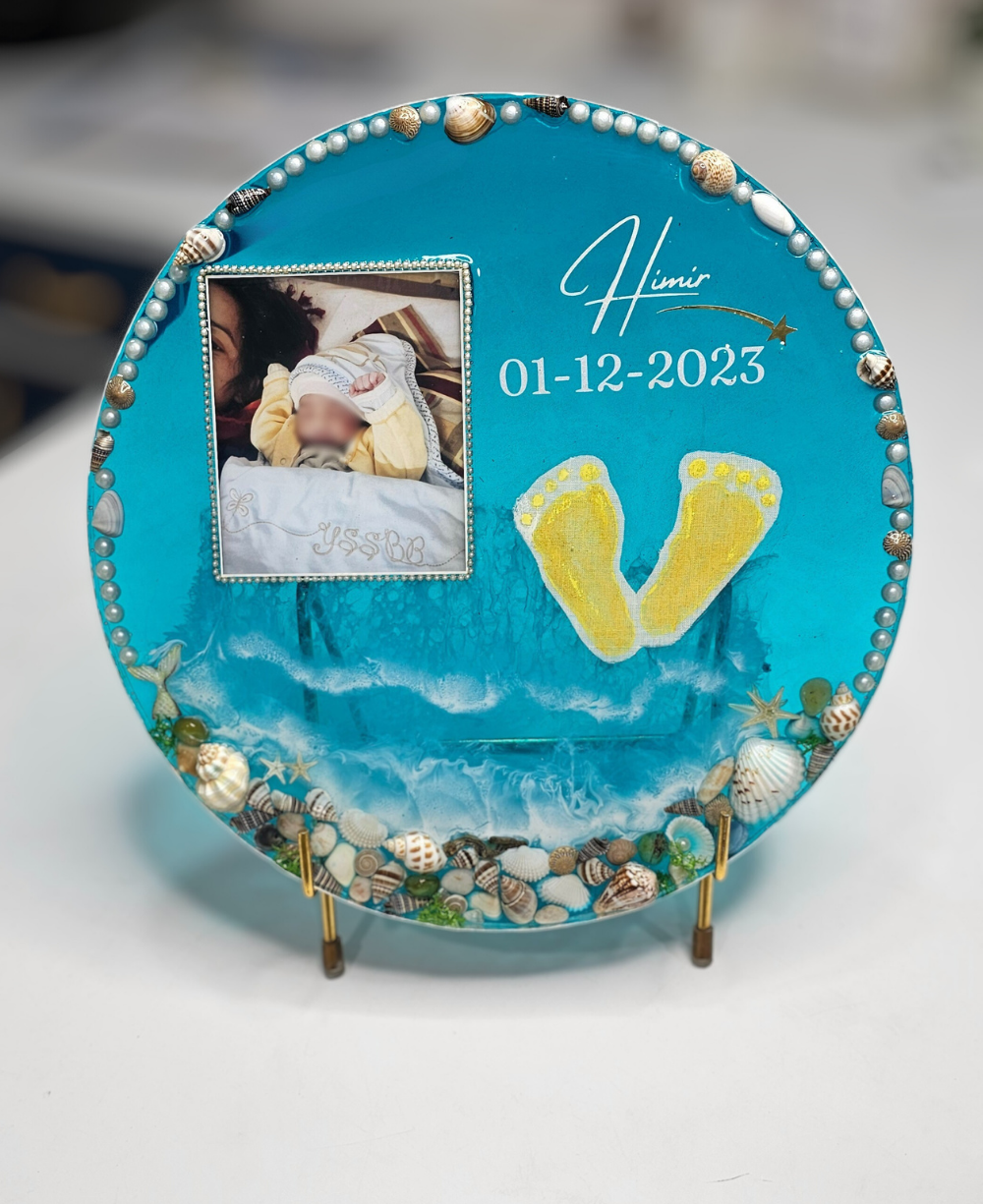 Capture your baby?s precious moments forever with this custom resin preservation plate featuring baby footprints, name, date of birth, and photo. A perfect keepsake and gift for new parents.