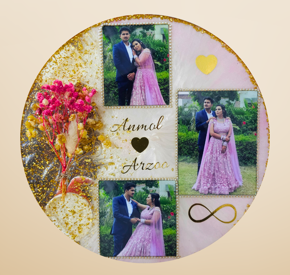 Celebrate your love story with our Personalized Resin Photo Frame featuring Preserved Flowers – a truly unique way to cherish special memories forever! This elegant circular frame is expertly handcrafted using premium-quality resin and real preserved flowers, beautifully combined with your most cherished photographs. Each frame is designed to capture the essence of your relationship, making it the perfect gift for anniversaries, weddings, engagements, or as a heartfelt keepsake.