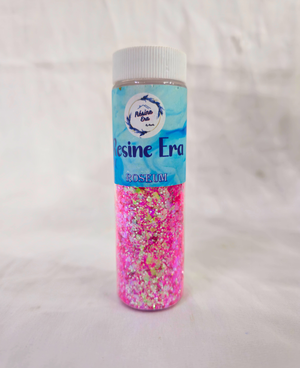 Add a stunning sparkle to your resin creations with Resine Era Roseum Glitter . Perfect for resin art, jewellery making, coasters, keychains, wall clocks, trays, and other DIY projects. Our premium-quality glitter has ultra-fine reflective particles that deliver a mesmerising shimmer and smooth blending in epoxy resin. Safe, easy to mix, and long-lasting – ideal for professional artists and hobbyists alike.