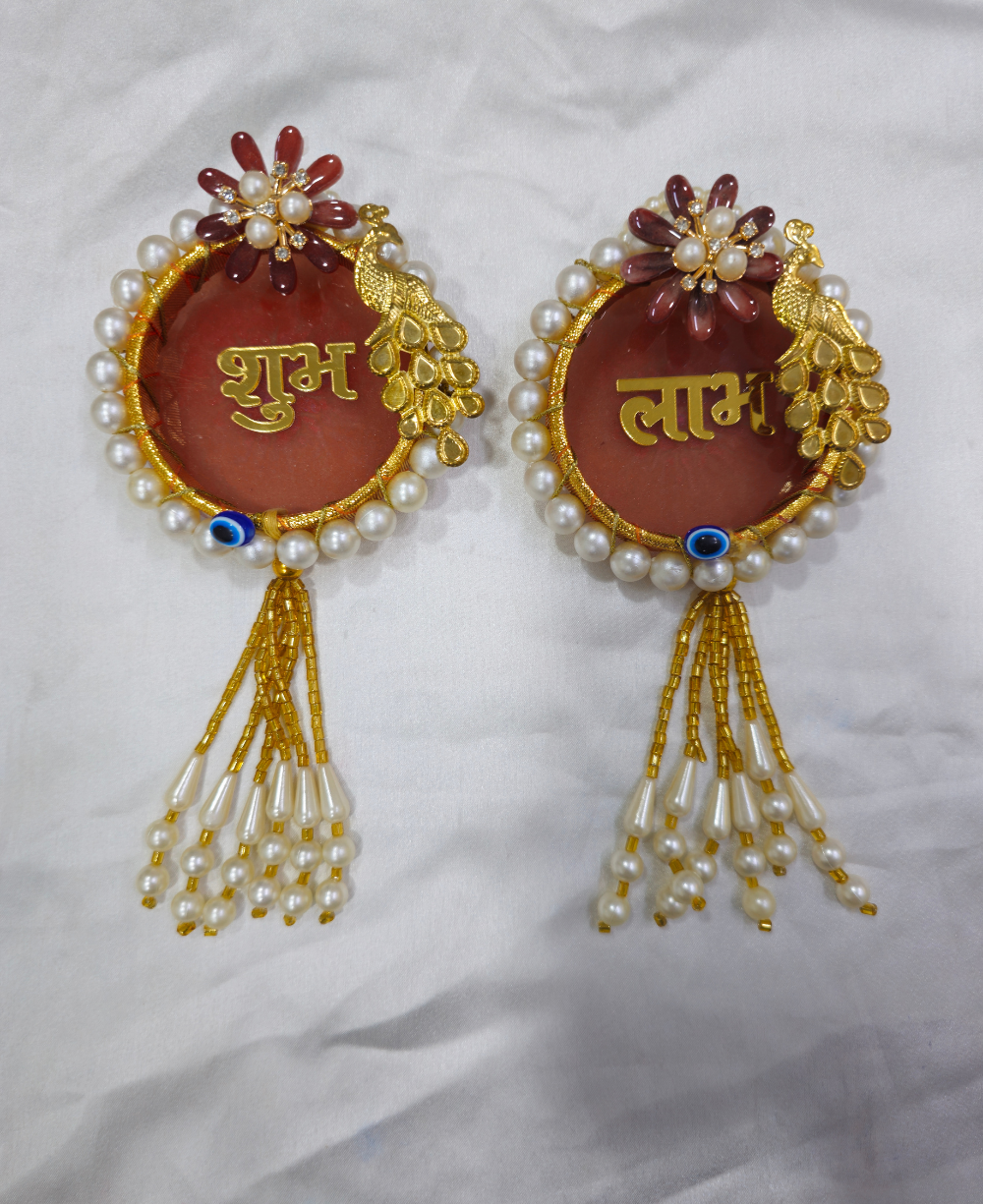 Each piece features traditional ????? and ????? symbols at the center, representing auspiciousness and prosperity. This unique design blends traditional charm with a modern handcrafted touch ? perfect for your entrance, pooja room, or festive d?cor.