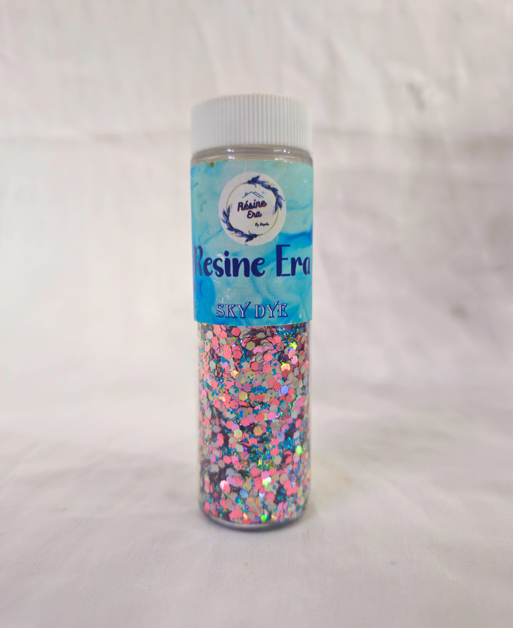 Add a stunning sparkle to your resin creations with Resine Era SKY DYE Glitter . Perfect for resin art, jewellery making, coasters, keychains, wall clocks, trays, and other DIY projects. Our premium-quality glitter has ultra-fine reflective particles that deliver a mesmerising shimmer and smooth blending in epoxy resin. Safe, easy to mix, and long-lasting – ideal for professional artists and hobbyists alike.